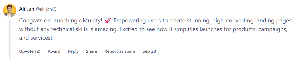 With dMunity, you're in full control. Create stunning, high-converting landing pages that reflect your vision and go live in seconds—no technical skills required. Whether you're launching a new product, campaign, or service, dMunity makes it effortless.